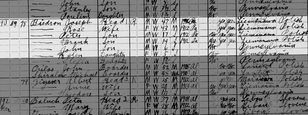 W kolejnych badaniach udało się dotrzeć do spisu „PITTSBURGH CITY DIRECTORY – 1920-” Jest w niej zapis, który potwierdza adres rodziny Biedroniów 190-49th, jest też dopisek: „Peter printer John Mellor & Sons, i słowo „lab” – skrót słowa labor.
